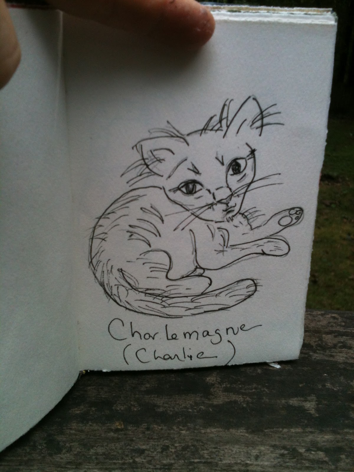 Inside the book are two drawings. One drawing is Charlie...at two months old.